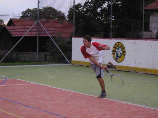 V pátek 6. července si přišli na své tenisti a hlavně tenistky. Uskutečnil se noční tenisový turnaj smíšených čtyřher bez omezení kategorií. Sešlo se deset tenisových párů, které byly rozděleny do dvou skupin. Ve skupině „A" velmi těsně zvítězili Krob Petr s Kristýnou Reslovou před P. a E. Holubovými, ve skupině „B" L. Fanc a I. Pilařová před Jonášem Chudým a Janou Ulčovou, kteří pak v zápasu o třetí místo neuspěli 3:0 proti páru P. a E. Holubovi. Ve finále pak vyhrál pardubický ( :-) ) pár Krob-Reslová nad dvojcí Fanc-Pilařová a to výsledkem 3:1.